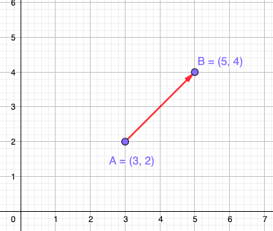 Considera los siguientes puntos: \(A=(3,2)\) y el punto \(B=(5,4)\).